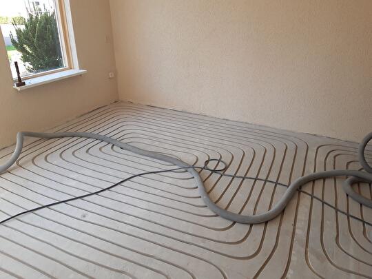 Nadat de leidingen zijn gelegd, kunnen de sleuven worden dichtgesmeerd met een mortel. Deze mortel vormt een goede basis voor het leggen van laminaat en plavuizen. Ook is de mortel geschikt voor de egaline die bij pvc- en gietvloeren wordt gebruikt. Vloerverwarming is goed te combineren met laminaat, tegels, pvc- en gietvloeren.